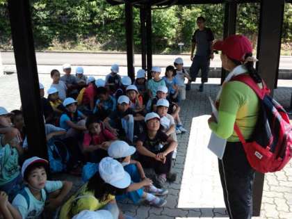 今夜はナイトハイク。昼間のうちにコースを下見しておきます。夜になると真っ暗になり、懐中電灯の明かりを頼りに、班で行動します。さて、夜はどうなるでしょうか。