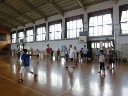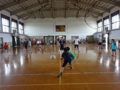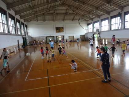 7月15日 (月) 午前10時より 下鴨小学校体育館で,「親子ドッジボール大会」,が下鴨少年補導委員会主催・下鴨たんけんクラブ,下鴨体育振興会,下鴨小学校PTA共催で盛大に行われました。低学年の部,高学年の部に分かれ,また,保護者や地域の方々も中に入り,大人も子どもも気持ちの良い汗をいっぱい流すことができました。