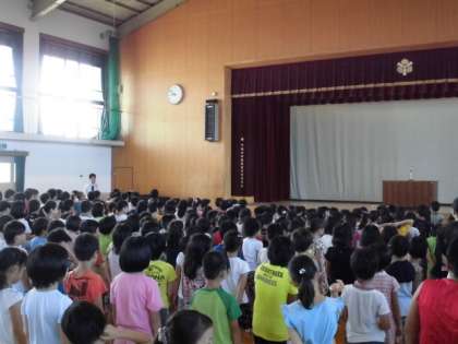 今日で前期が終了します。校長先生からは「竹の節」のお話があり,節目節目を大事にして,強く成長していってほしいと話されました。担任の先生から通知票をもらって帰りますので,後期への励みとしてほしいと思います。