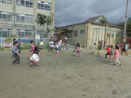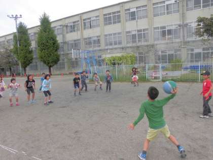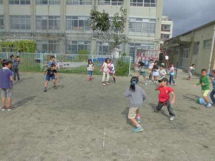 毎週水曜日の中間休みに「みんなあそび」をしています。あそび係の子どもたちが毎週違う遊びを考え,クラスみんなで楽しんでいます。今日は,ドッジボールをして楽しみました。
