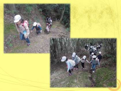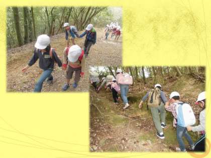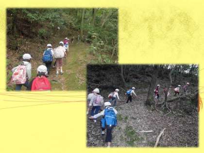 今日は,1年生と2年生が一緒に「校外学習」へ行ってきました。まずは地下鉄で移動し,松ヶ崎小学校の横から五山の送り火の「法」の山に登りました。去年は今の3年生に助けてもらっていた2年生が,今年は1年生をしっかりと引っ張っている姿に成長を感じられ嬉しく思いました。