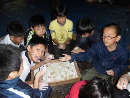 ついたお餅を丸めて、きな粉やしょうゆ、大根おろしで味わいました。とってもおいしかったです。