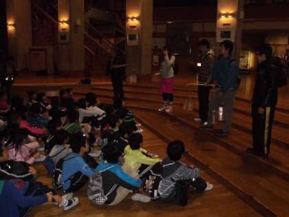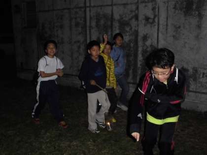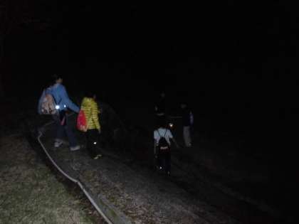 いよいよナイトハイク。辺りは真っ暗で星が輝いています。みさきの家で経験済みなのであまり怖がっている様子はありません。