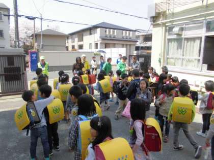 初めての集団下校です。見守りたいの方々についてもらい、3コースに分かれて帰りました。毎日、交通安全に気をつけて登下校をしてほしいです。
