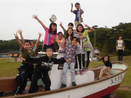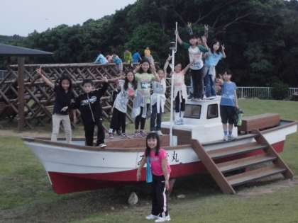 芝生広場にある船にのり、船長さんの気分で楽しんでいます!