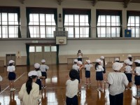 夏休み中に体育館が樹脂加工されていたので,キュッキュッと動くたびに音がしておもしろかったです。