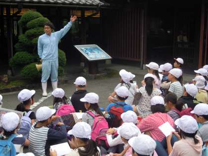 しばづけを漬けている作業場を見学したのですが,一つの樽になすが1000kgも入っているそうで,その樽がいくつも並んでいました。そして,樽からしばづけを取り出す作業をしているところを,タイミングが良かったので見学することが出来ました。さらに,出来たてのしばづけを試食させてもらい,子ども達は大喜びでした。