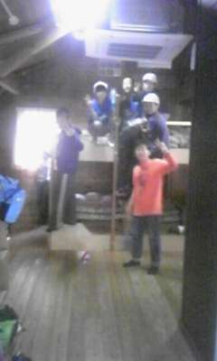 昼食タイムです。朝早くから心を込めてつくっていただいたお弁当をみんなモリモリ食べました。「とてもおいしかった。」と笑顔いっぱいの5年生です。活動はみんなが頑張っているので,スケジュール通りというより,ゆとりをもって進んでいます。みんな元気です。残念ながらまた雨が降ってきました。