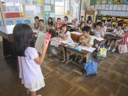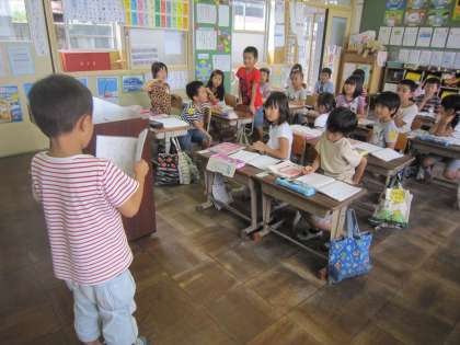 5時間目の国語では,「おはなし きいて」の発表会をしました。まず,発表する前に,話し手さんが気をつけること・聞き手さんが気をつけることを確認しました。本番では,気をつけることを意識して,みんな上手に自分のおはなしを発表することができました。聞き手さんからは,おはなしに沿った質問も出て,話し手さんはその質問への回答もすぐに考えて答えを返すことができました。話し手さんも聞き手さんもどちらもにこにことして嬉しそうだったのが,印象的でした。