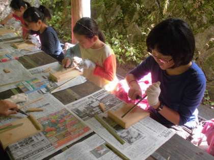 小刀を使っての竹細工は結構難しいようです。でもコツがつかめるようになると、とても上手に削れるようになりました。