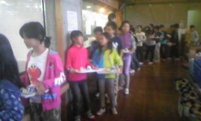 二日目の朝です。みんな元気に朝食をいただきました。みんなでいただく食事は,また格別においしく感じます。今日の活動も楽しみです。