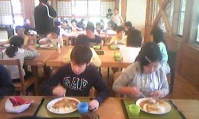 お昼ご飯は翠峰荘でのカレーライスです。朝からの活動でみんなおなかがペコペコです。多くの子ども達が「お替り」をしました。本当においしかったです。