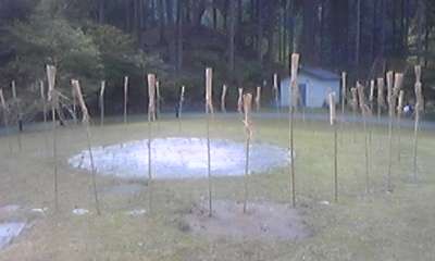 出来上がった松上げを,しっかりと地面に立てて,燃やします。どんな光景が見られるのか今から夜が楽しみです。