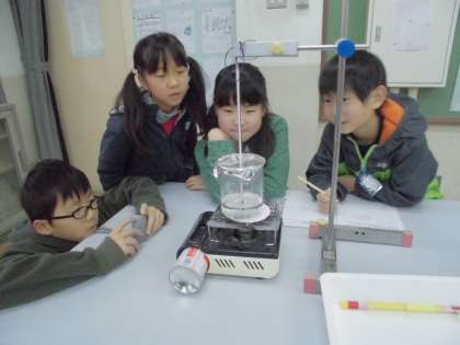 水を温め続けると,どうなるのか。水の様子とそのときの温度を調べる実験を行いました。