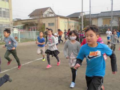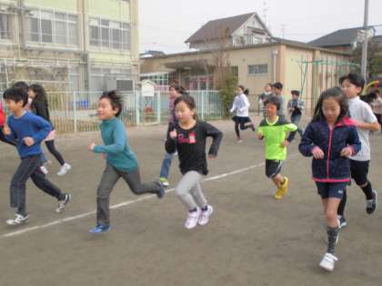 全校で取り組んでいる中間マラソンに,3年生も,一生懸命に頑張って走っています。