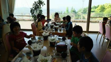 いよいよ2日目です。昨晩は環境が違うせいか,なかなか寝付けない子どももいたようですが,みんな元気いっぱいです。朝食もしっかりいただきました。おなかもいっぱいになり,さあ次の活動に向けて,準備万端整いました。