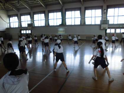 今日は体育館で練習しました。
