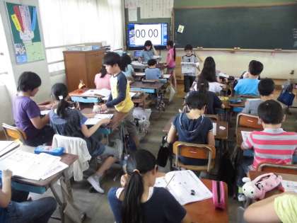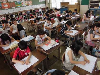掃除の後の「ぐんぐんタイム」で4年生は漢字の練習や算数の計算問題に取り組んでいます。今日は漢字の練習を行いました。子どもたちは集中して取り組みました。