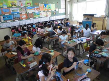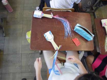 鳴子を振ると端につけたひもがきれいに揺れます。