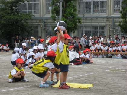 おむすびが転げてしまわないように,上手に運ぶのが難しかったですが,みんなでがんばりました。
