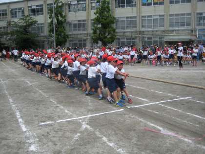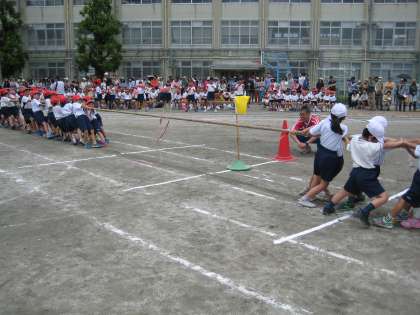 みんなで力を合わせて,よいしょよいしょと引っ張りました。
