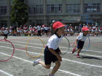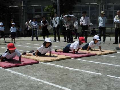1年生は50mの障害物走に挑戦です。