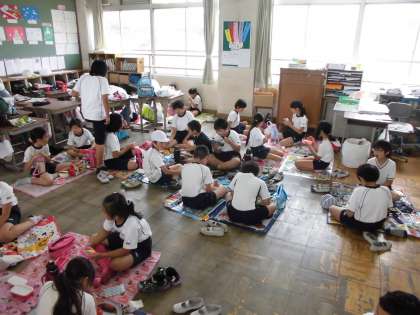 運動会の時の昼食の様子です。