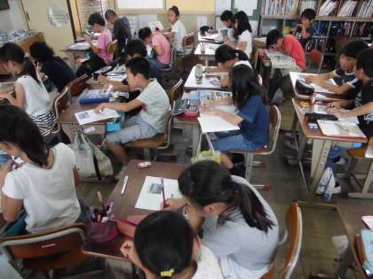 松ヶ崎浄水場で見学したことや,水について学習したことについて新聞を作っています。