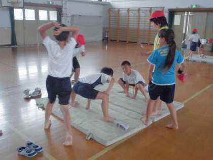 今日の体育は雨がふったので,体育館で相撲をしました。