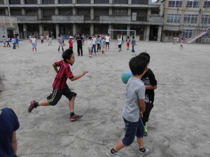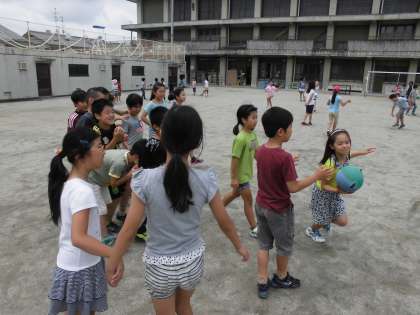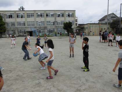 2組は,ばら当てをして遊びました。ボールを投げるのが得意でない子どもも頑張って投げていました。
