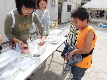 上手くできると駄菓子と交換する券がもらえるので真剣です。