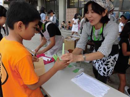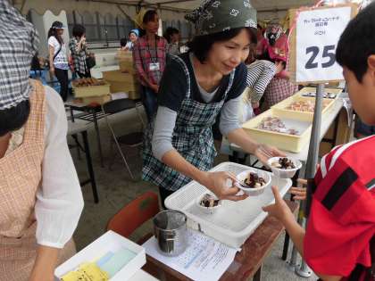 6年生の保護者の方々による出し物はタピオカドリンクとカップインチョコバナナの販売です。どちらも大人気であっという間に売り切れです。