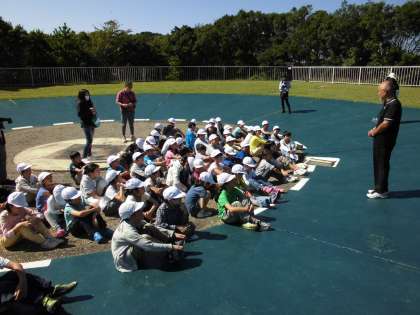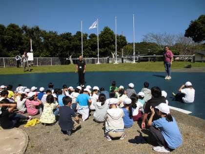 青空の下 入所式を行いました。みさきの家の先生から ○5分前鼓動  ○来たときよりも美しく ○あいさつをしっかりしましょうと教わりました。また友達のよいところキラキラ輝いているところを沢山みつける約束をしました。