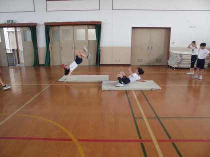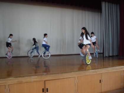 竹馬,縄跳び,一輪車,体操,けん玉,英語のそれぞれのグループで協力して練習をしました。