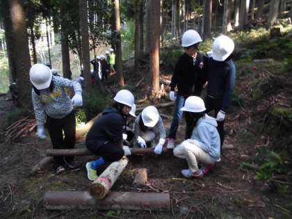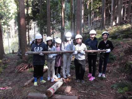 丸太にした木を友達と協力して運びました。みんな集中してしていたので,アッという間に時間がたち,昼食の時間になってしまいました。日本の林業に興味をもった子どももいたようです。