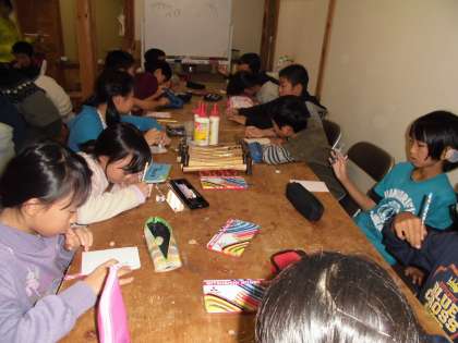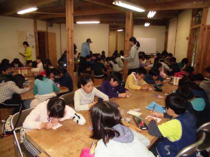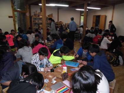 午後4時20分頃から花背にきてからの2日間の出来事を家族に伝えるため,各自印象に残ったこと,感動したこと,新しく知ったことなどをハガキに書きました。