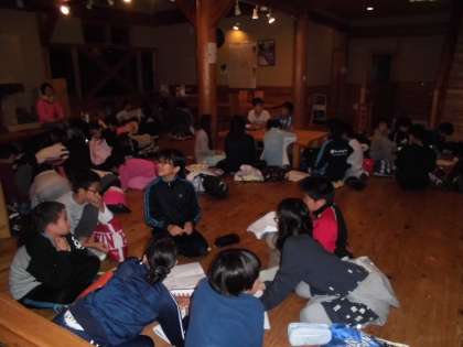 今日は,沢山の取り組みがあり,多くの体験をしました。一日の振り返りを「すいほう荘」の玄関ロビーで行いました。