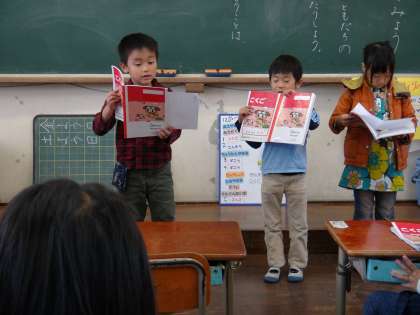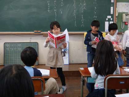友達が「今、一番楽しいと思うこと」についてペアの友達に質問し、聞いたことをみんなの前で発表しました。友達への質問の仕方や内容、発表するときの「〜だそうです。」の話し方に気をつけて取り組むことができました。