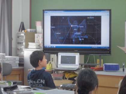 今日の理科では,オリオン座にまつわる神話を聞き,その位置を確かめました。