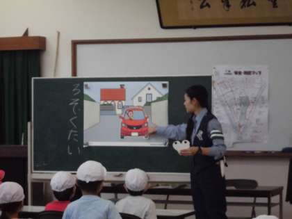 警察の方と地域の方に来ていただき,交通安全について勉強しました。慣れ始めた通学路のどこを特に気を付けるとよいかをしっかり教えていただきました。自分の安全を自分で守れるようになってほしいです。