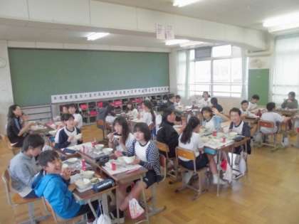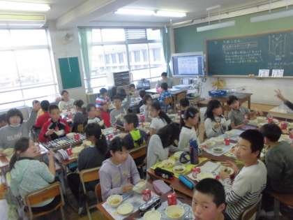 友達と楽しい雰囲気のもとおいしく給食をいただきました。