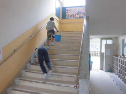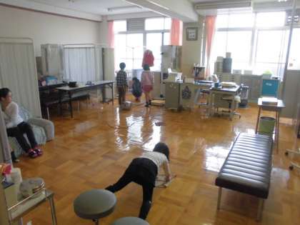 子ども達はそれぞれの担当の場所で掃除をがんばっています。