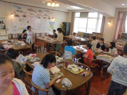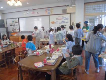 いつもの教室とは異なり,子ども達は違った雰囲気のなかで楽しく給食をいただきました。