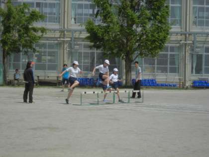 ハードルの間の歩数や跳び超える時の姿勢等に気を付けて練習しました。