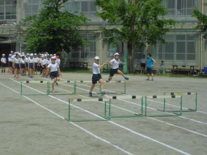 運動会の練習で,今日はハードル走の練習をしました。