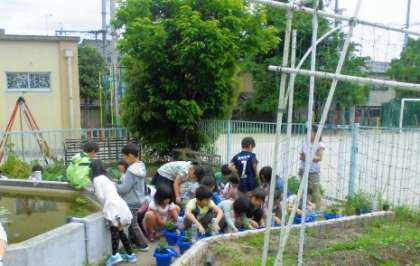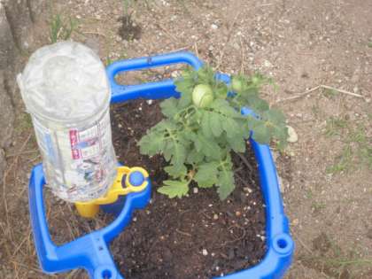 ミニトマトの苗を植えました。これから各自が苗の世話をしていきます。おいしいミニトマトができるといいですね。