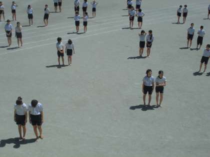 運動会団体演技の練習を運動場で行いました。