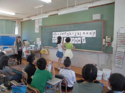 次にアルファベットに慣れ親しむゲームをして,最後にアルファベットのチャンツを言いました。