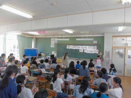 今日はALTの先生と一緒に,1・2組合同で学習しました。