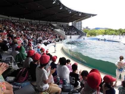 イルカのジャンプする姿を見て,多くの子ども達が歓声を上げていました。